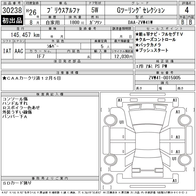 Год выпуска2014 Пробег 145 000 км КузовZVW41W КомплектацияG TOURING SELECTION