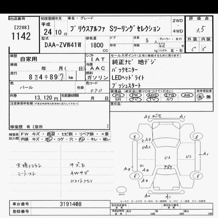 Год выпуска2012 Пробег 85 000 км КузовZVW41W КомплектацияS TOURING SELECTION