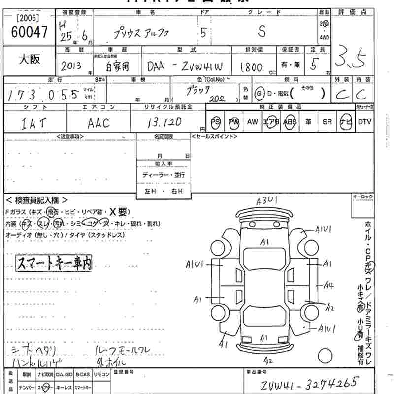 TOYOTA PRIUS ALPHA 2013 г., лот № 60047
