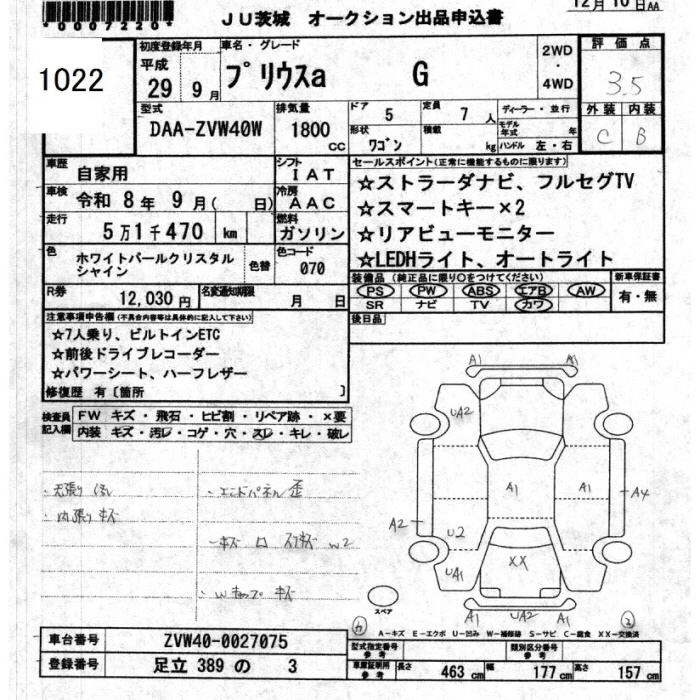 TOYOTA PRIUS ALPHA 2017 г., лот № 1022