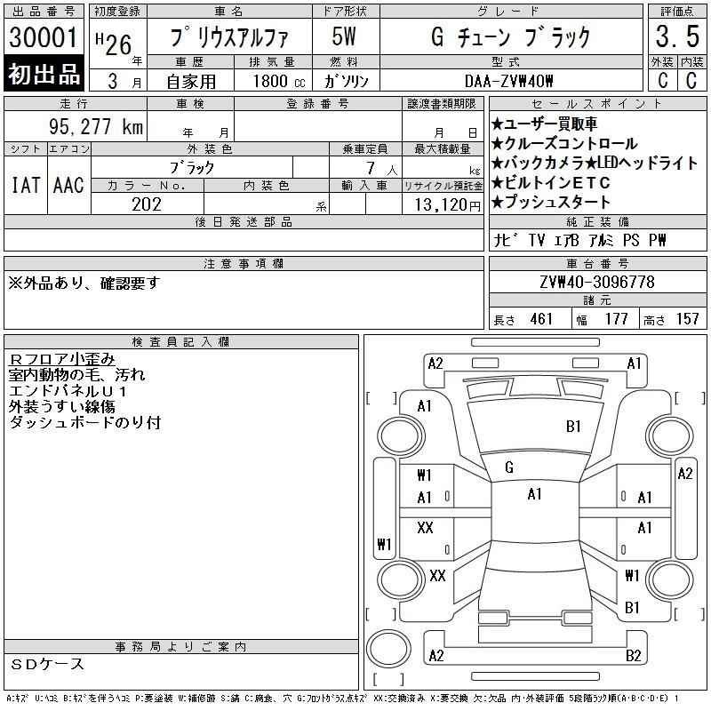 TOYOTA PRIUS ALPHA 2014 г., лот № 30001