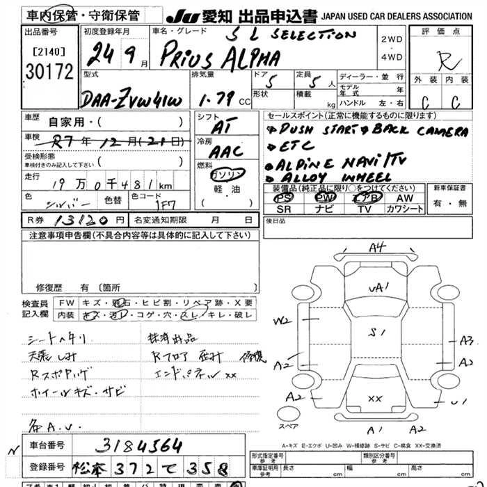 TOYOTA PRIUS ALPHA 2012 г., лот № 30172