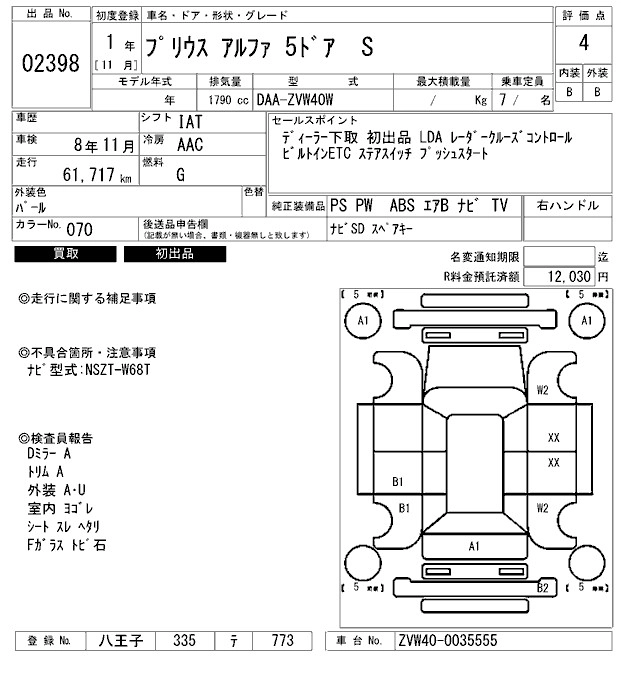 TOYOTA PRIUS ALPHA 2019 г., лот № 2398