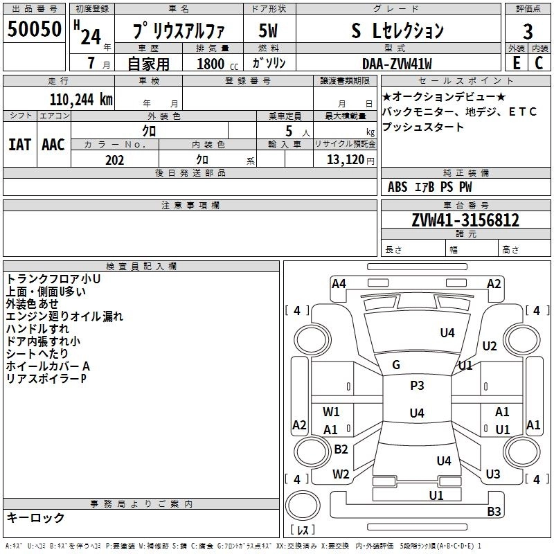 TOYOTA PRIUS ALPHA 2012 г., лот № 50050