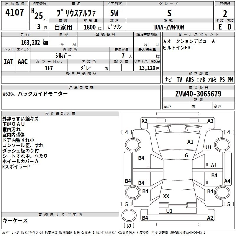 TOYOTA PRIUS ALPHA 2013 г., лот № 4107