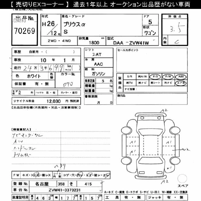 TOYOTA PRIUS ALPHA 2014 г., лот № 70269