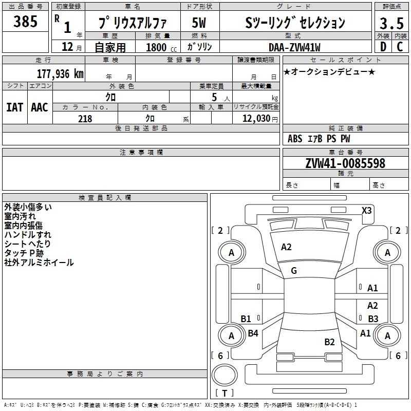 TOYOTA PRIUS ALPHA 2019 г., лот № 385