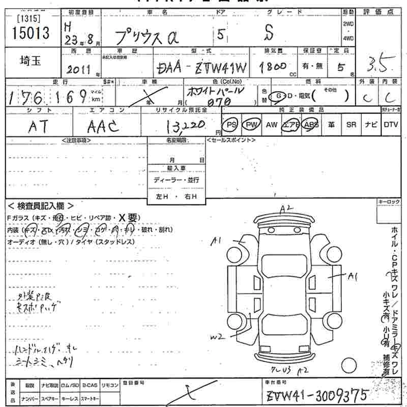 TOYOTA PRIUS ALPHA 2011 г., лот № 15013