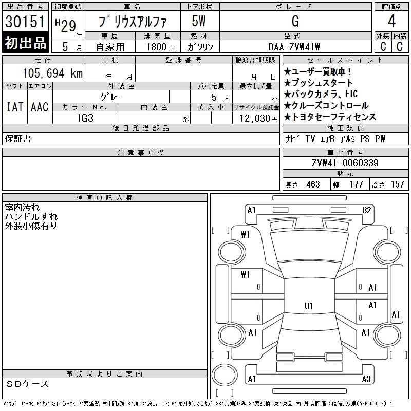 TOYOTA PRIUS ALPHA 2017 г., лот № 30151