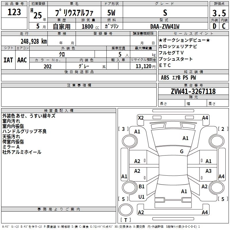 Год выпуска2013 Пробег 249 000 км КузовZVW41W КомплектацияS