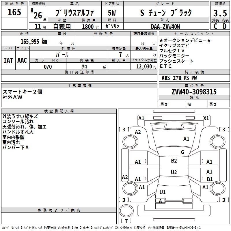 TOYOTA PRIUS ALPHA 2014 г., лот № 165