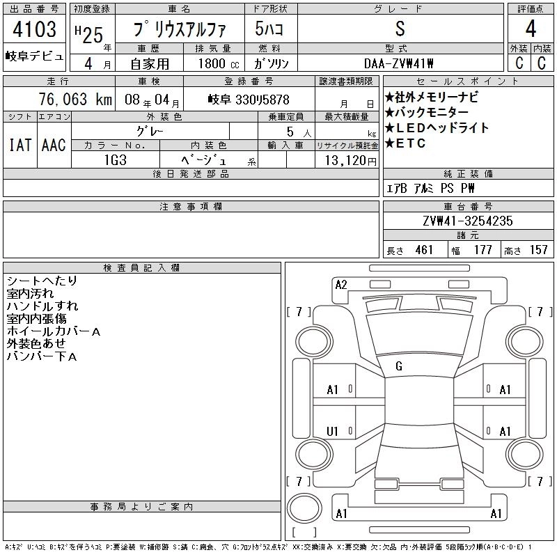 TOYOTA PRIUS ALPHA 2013 г., лот № 4103