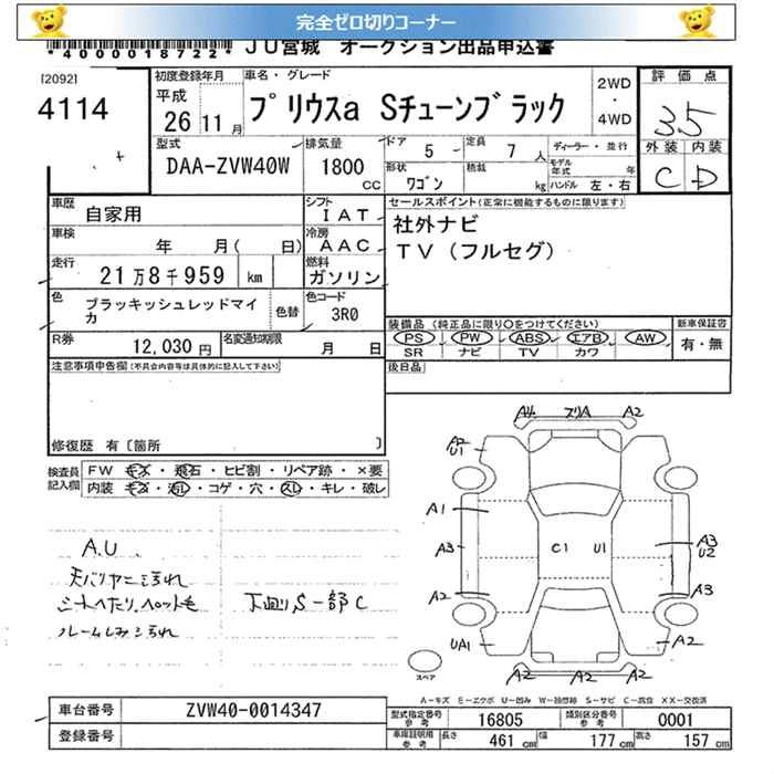TOYOTA PRIUS ALPHA 2014 г., лот № 4114