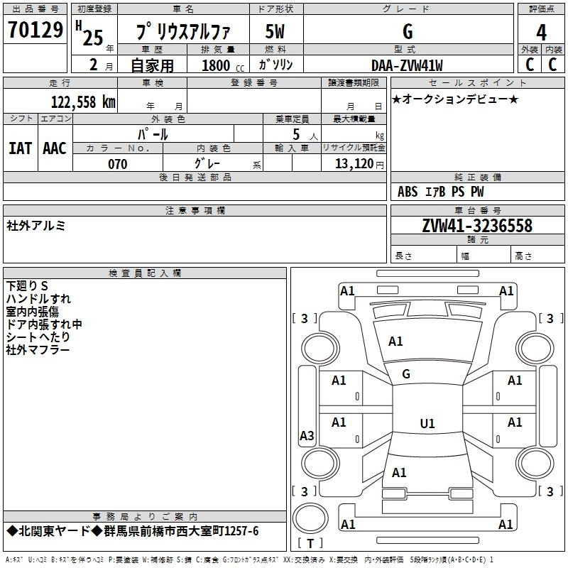 Год выпуска2013 Пробег 123 000 км КузовZVW41W КомплектацияG