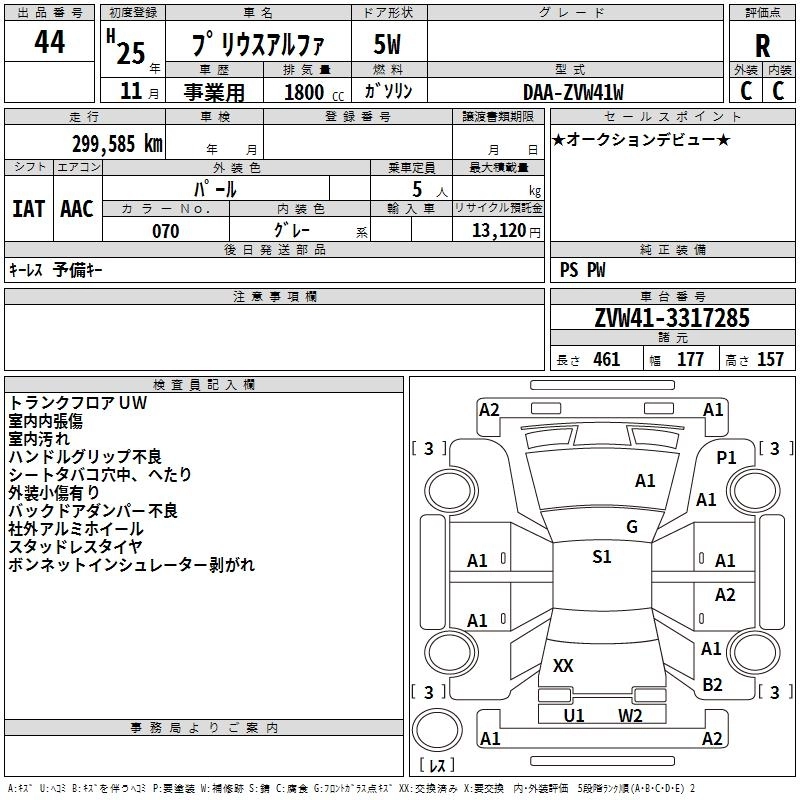TOYOTA PRIUS ALPHA 2013 г., лот № 44