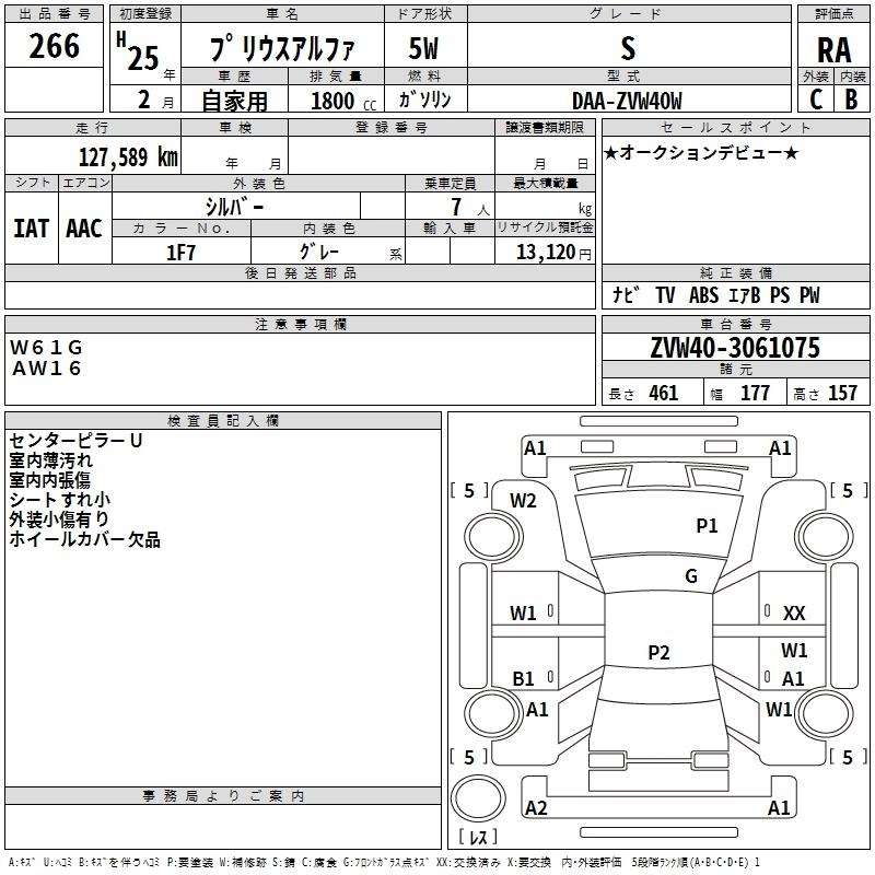 TOYOTA PRIUS ALPHA 2013 г., лот № 266