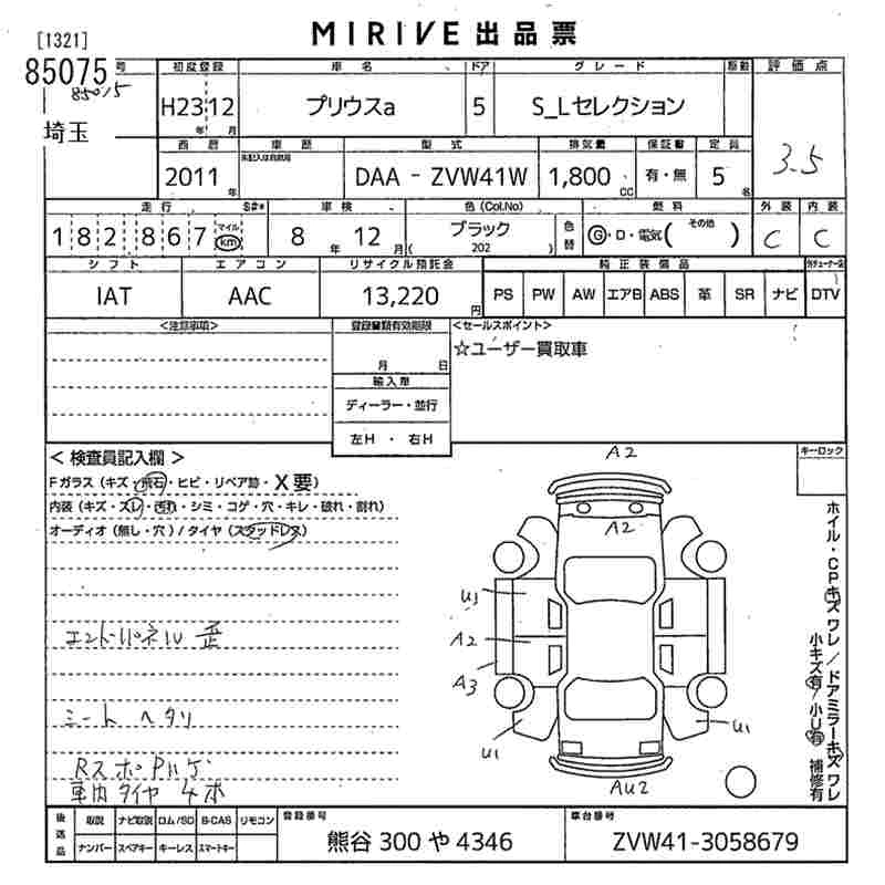Статус выставлен на аукцион Лот 85075 Аукцион MIRIVE Saitama Дата аукциона 11.03.2026