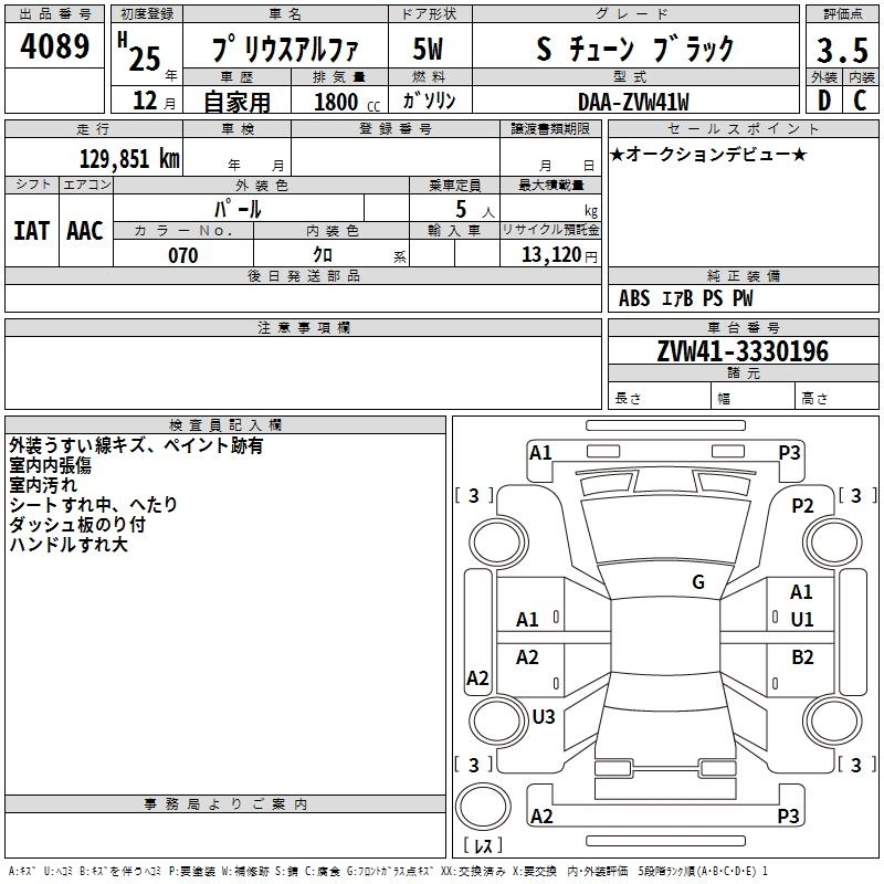 TOYOTA PRIUS ALPHA 2013 г., лот № 4089