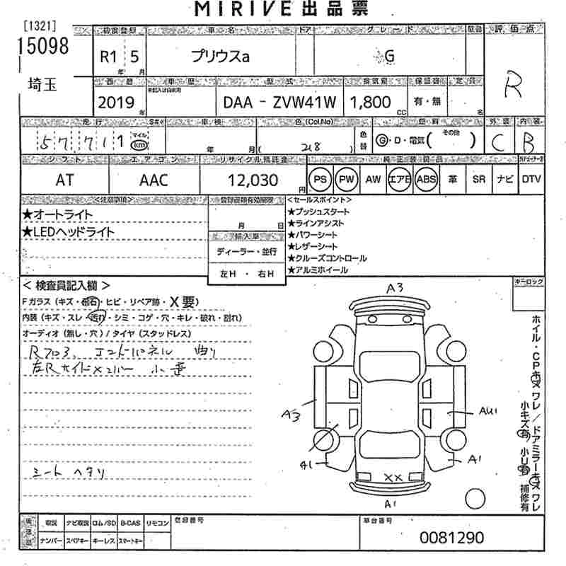 Статус выставлен на аукцион Лот 15098 Аукцион MIRIVE Saitama Дата аукциона 11.03.2026