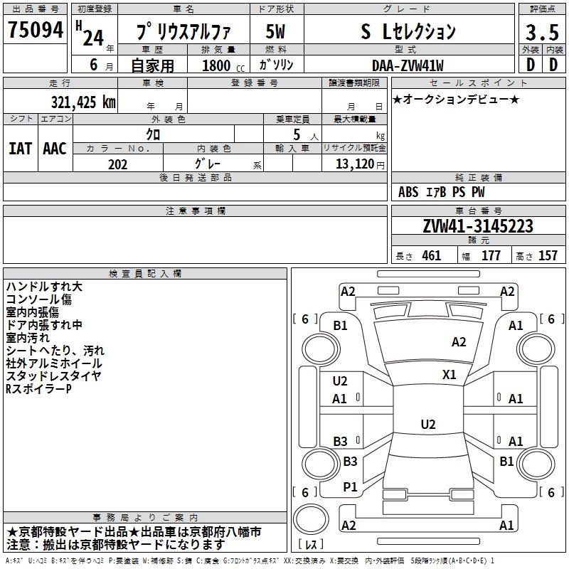 Год выпуска2012 Пробег 321 000 км КузовZVW41W КомплектацияS L SELECTION