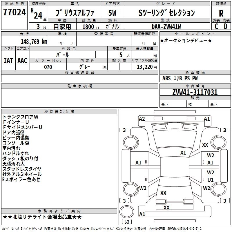 Год выпуска2012 Пробег 149 000 км КузовZVW41W КомплектацияS TOURING SELECTION
