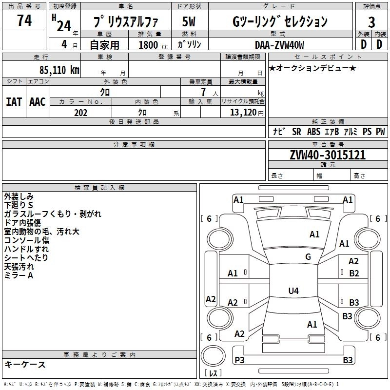 Год выпуска2012 Пробег 85 000 км КузовZVW40W КомплектацияG TOURING SELECTION