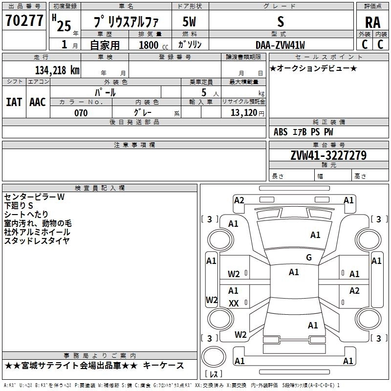 TOYOTA PRIUS ALPHA 2013 г., лот № 70277