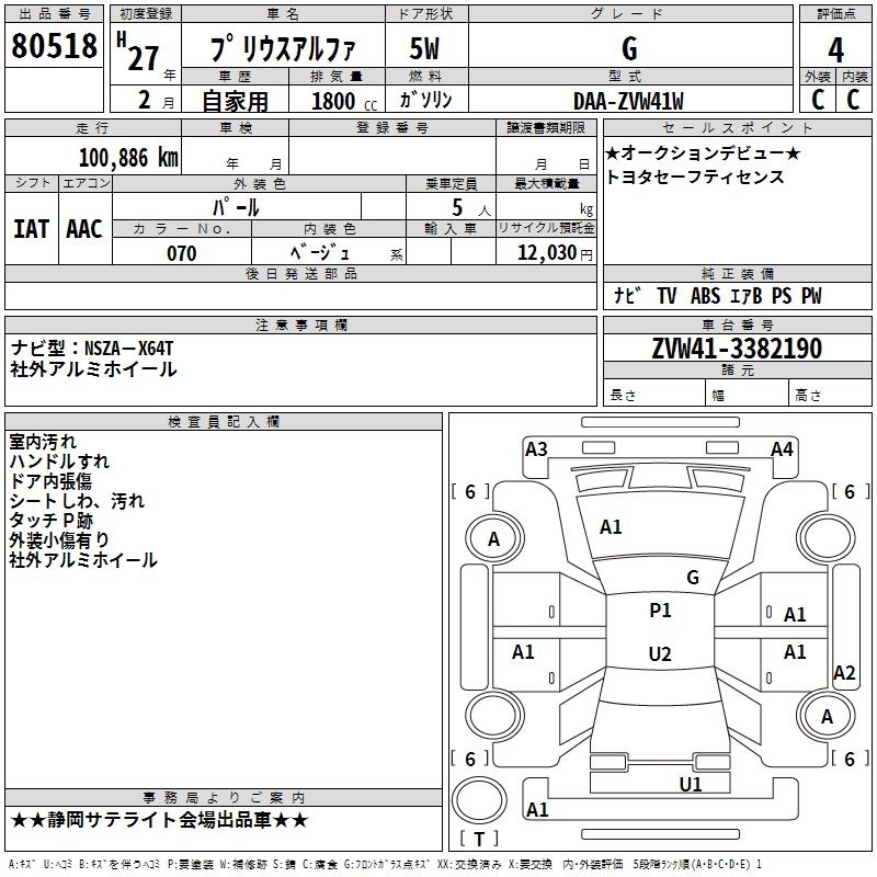 TOYOTA PRIUS ALPHA 2015 г., лот № 80518