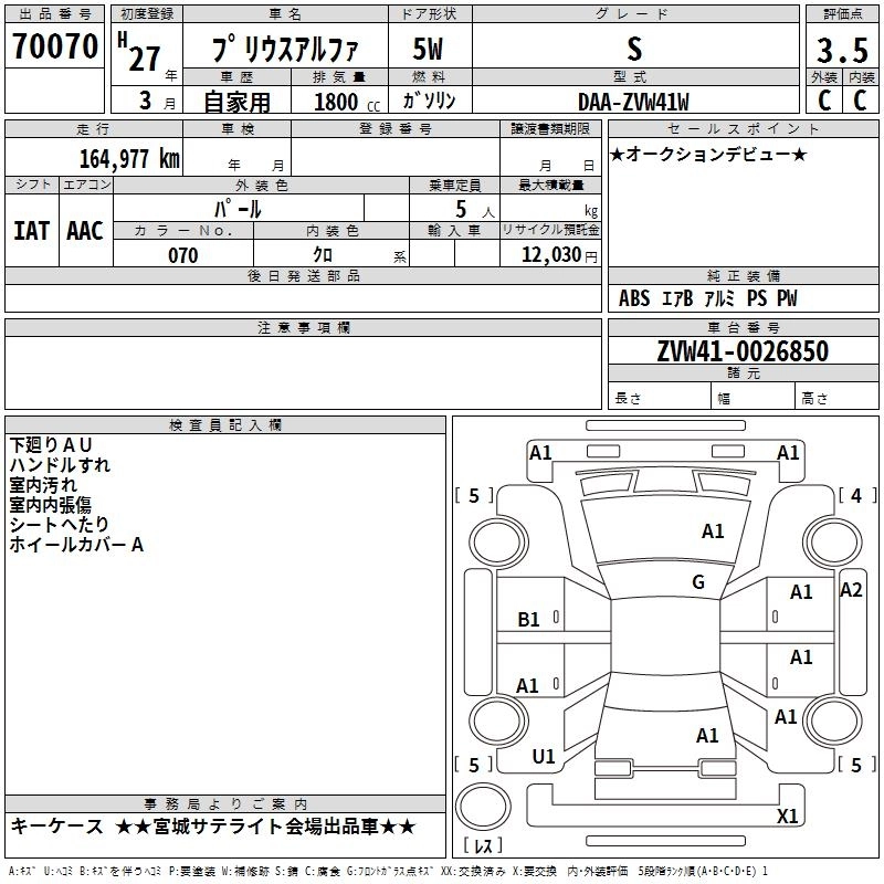 TOYOTA PRIUS ALPHA 2015 г., лот № 70070