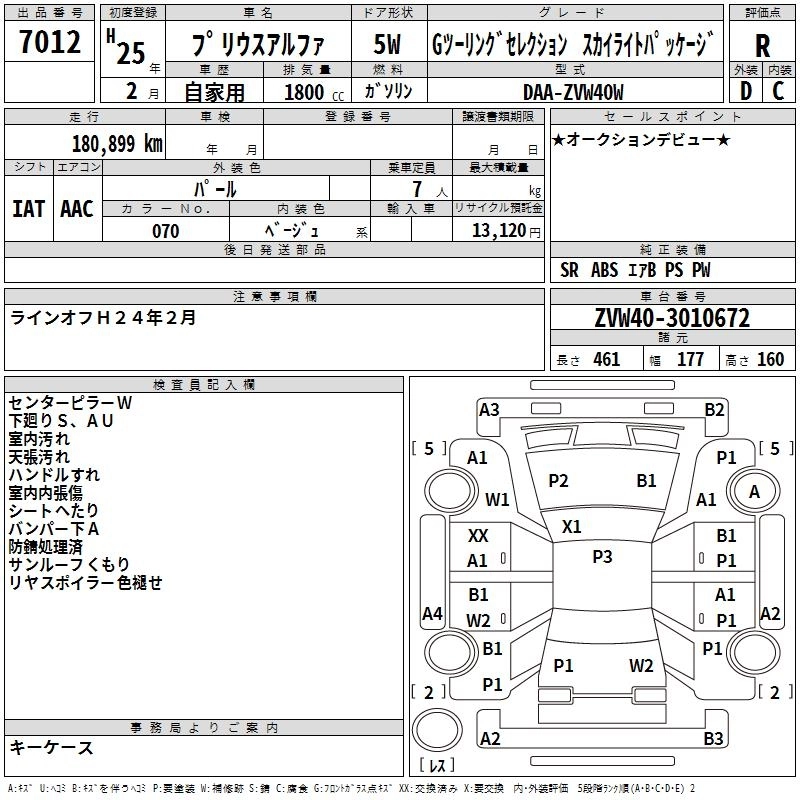 Год выпуска2013 Пробег 181 000 км КузовZVW40W КомплектацияG TOURING SELECTION SKYLIGHT PACK