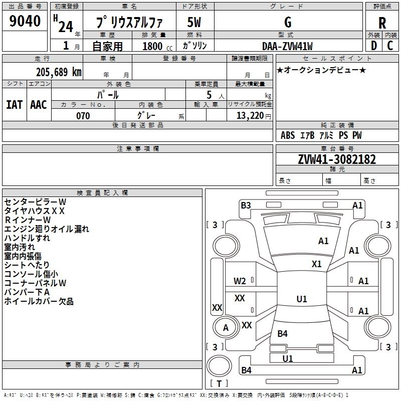 TOYOTA PRIUS ALPHA 2012 г., лот № 9040
