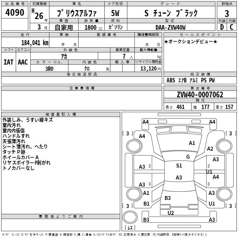 TOYOTA PRIUS ALPHA 2014 г., лот № 4090