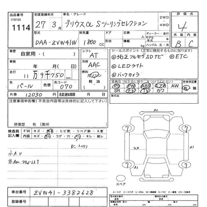 TOYOTA PRIUS ALPHA 2015 г., лот № 1114