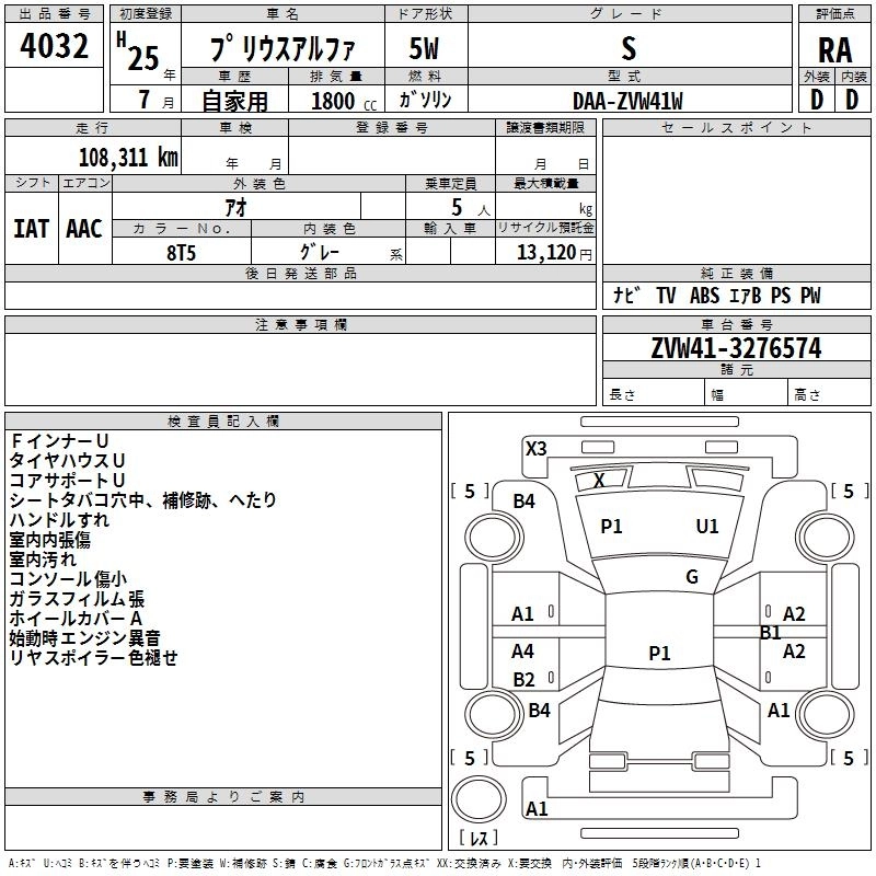 TOYOTA PRIUS ALPHA 2013 г., лот № 4032