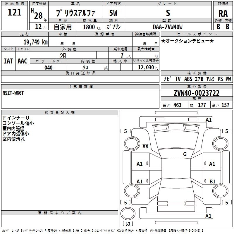 TOYOTA PRIUS ALPHA 2016 г., лот № 121