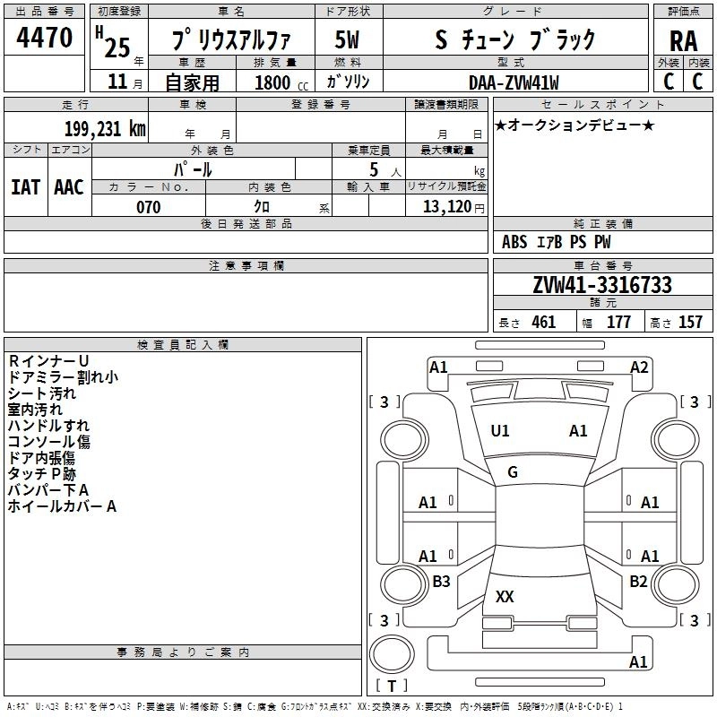 TOYOTA PRIUS ALPHA 2013 г., лот № 4470