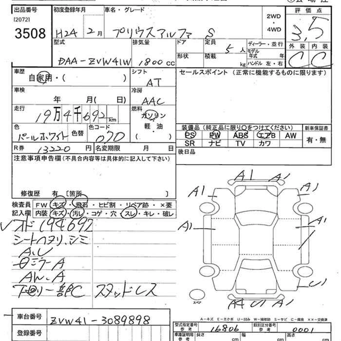 TOYOTA PRIUS ALPHA 2012 г., лот № 3508