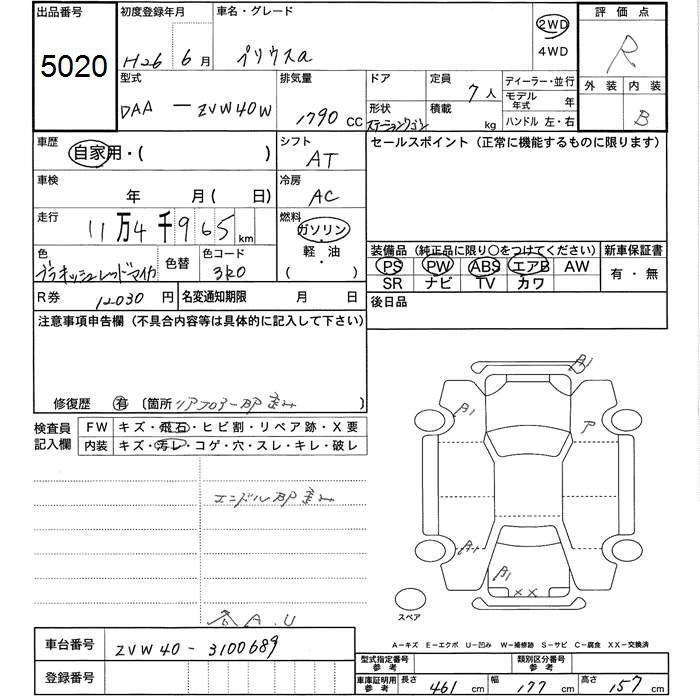 TOYOTA PRIUS ALPHA 2014 г., лот № 5020