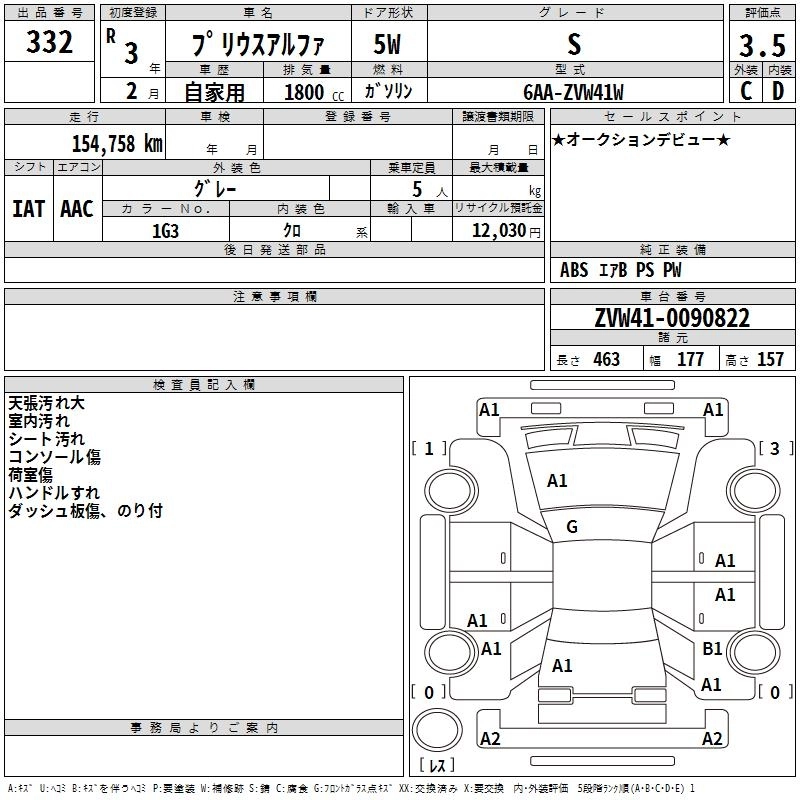 Статус выставлен на аукцион Лот 332 Аукцион TAA Chubu Дата аукциона 12.03.2026