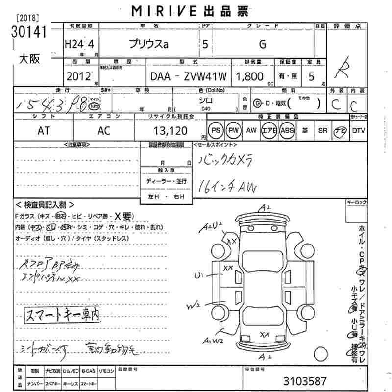 Год выпуска2012 Пробег 154 000 км КузовZVW41W КомплектацияG