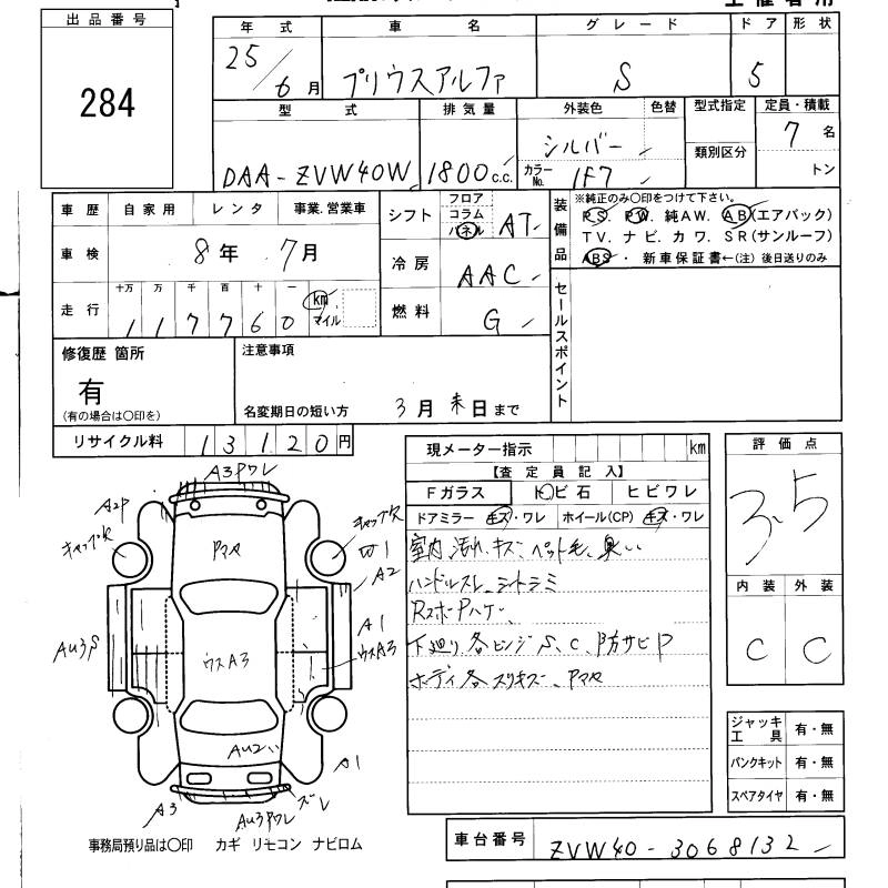 TOYOTA PRIUS ALPHA г., лот № 284