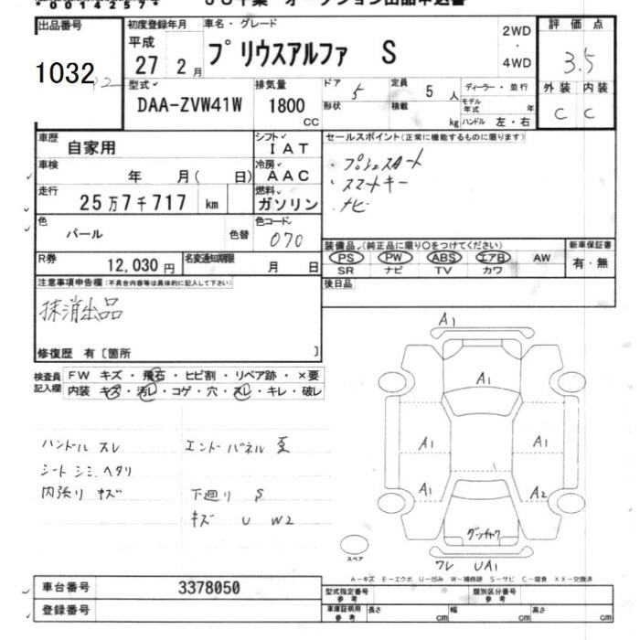 TOYOTA PRIUS ALPHA 2015 г., лот № 1032