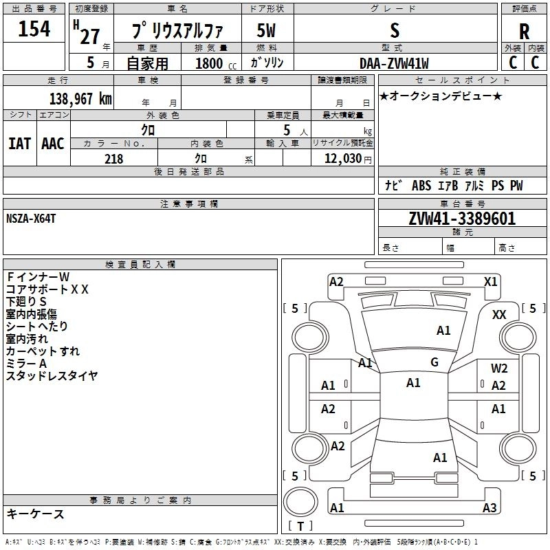 TOYOTA PRIUS ALPHA 2015 г., лот № 154