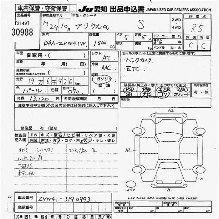 TOYOTA PRIUS ALPHA 2012 г., лот № 30988