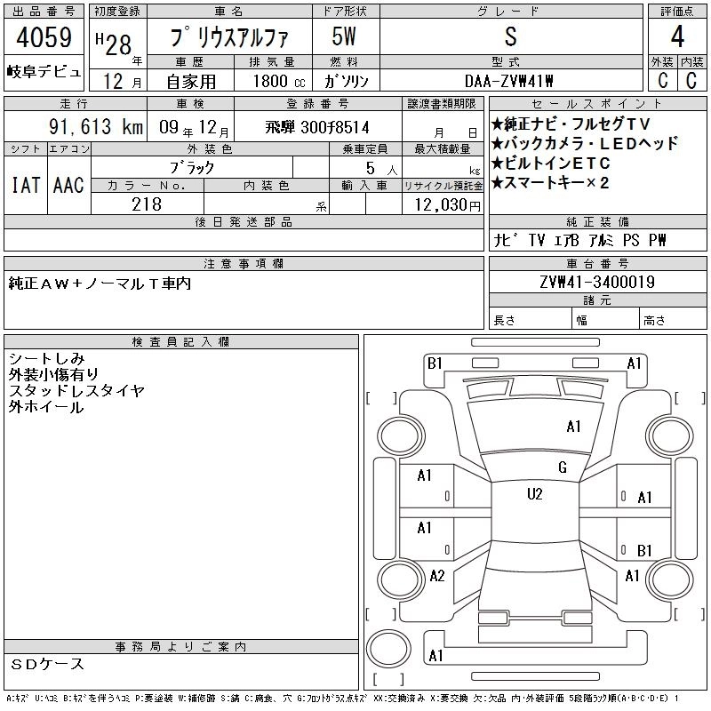 TOYOTA PRIUS ALPHA 2016 г., лот № 4059