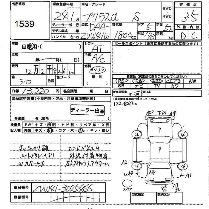 Год выпуска2012 Пробег 123 000 км КузовZVW41W КомплектацияS