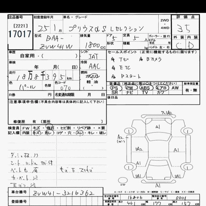 TOYOTA PRIUS ALPHA 2013 г., лот № 17017