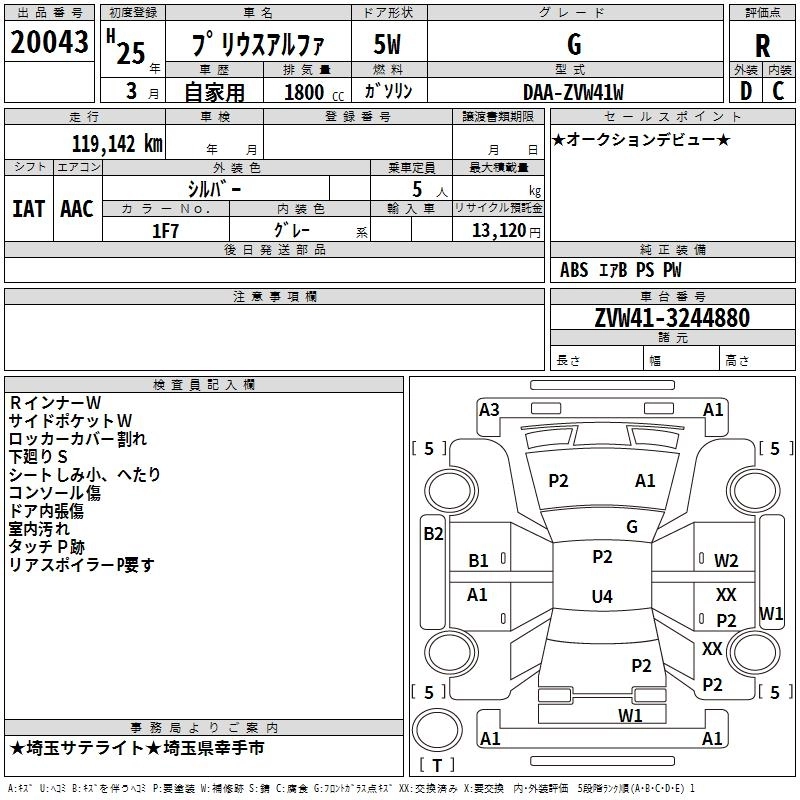 TOYOTA PRIUS ALPHA 2013 г., лот № 20043