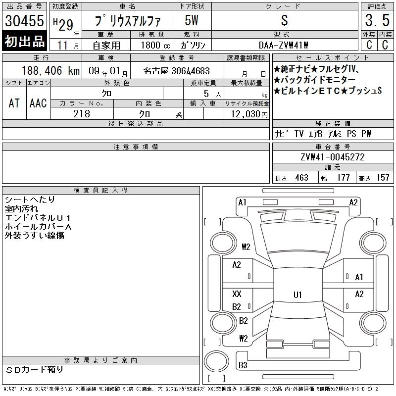 TOYOTA PRIUS ALPHA 2017 г., лот № 30455