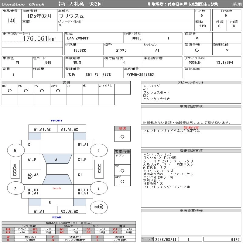 TOYOTA PRIUS ALPHA 2013 г., лот № 140